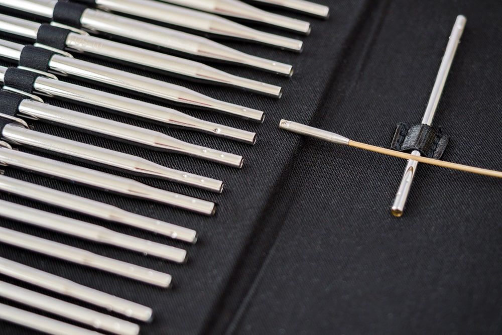 La característica especial del sistema addiClick es que todas las cuerdas y puntas de aguja se pueden combinar entre sí. Sin necesidad de herramientas como tornillos o llaves inglesas, las puntas y las cuerdas se pueden unir simplemente girando y haciendo click.