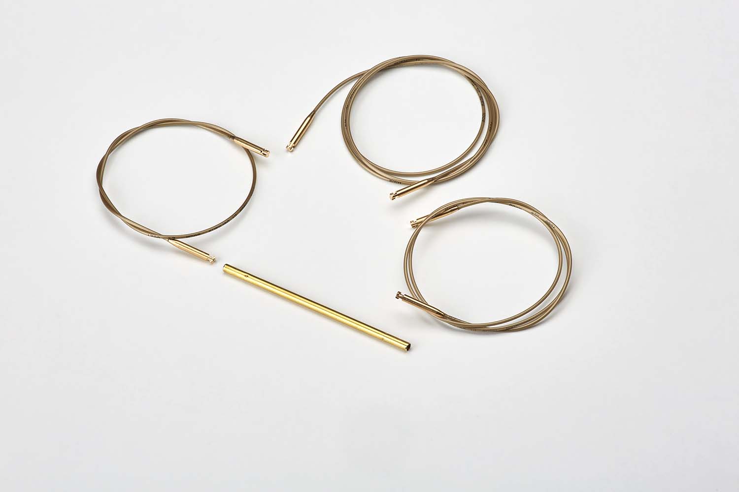 Los cordones con terminales de latón dorado complementan la serie addiNature, hecha de madera de olivo y agujas de bambú con puntas de latón. Los cables para tus puntas intercambiables están disponibles por unidad: 80 cm, 100 cm 120 cm y 150 cm.