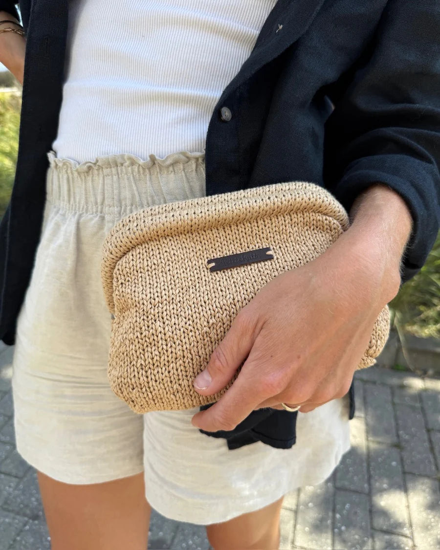 Etiqueta de cuero unitaria con la palabra Petiteknit en color café oscuro natural Ideal para dar el toque final a tus accesorios tejidos. Viene con la perforación de dos agujeros en los extremos para poder coserla.